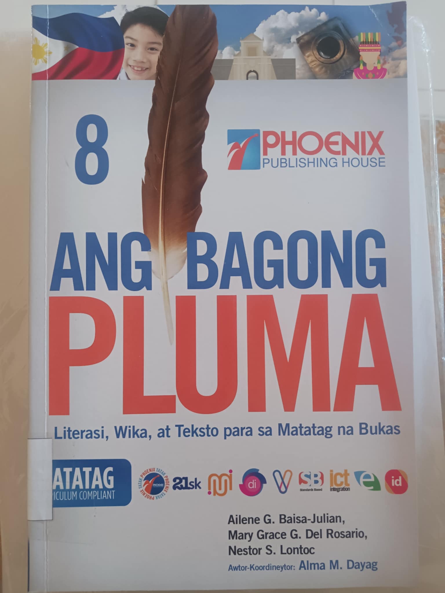 Ang Ang Bagong Pluma: Literasi, Wika, at Teksto para sa Matatag na Bukas – Grade 8 ay batayang aklat sa Filipino na nakabatay sa Kurikulum ng MATATAG. Layunin nitong paunlarin ang literasi, kasanayan sa wika, at pagpapahalaga sa mga tekstong Filipino ng mga mag-aaral. Pinagsasama nito ang mga aralin sa wika, panitikan, at pagbasa sa pamamagitan ng mga interaktibo at kontekstuwal na gawain na tumutugon sa mga kasanayang pangkomunikasyon ng ika-21 siglo. Idinisenyo ito upang hubugin ang mga mag-aaral na maging mapanlikha, mapagnilay, at may kamalayang kultural. |